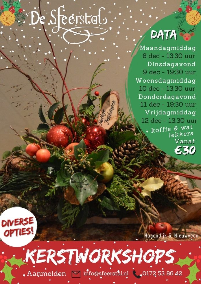 In de tweede week van december is het weer zover: onze gezellige Kerstworkshops! Kom in de feeststemming en ga creatief aan de slag in onze sfeervolle setting.