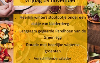 Sharing Dinner: 29-11-19 Onze koks gaan aan de slag met een overheerlijk diner op vrijdagavond 29 november; een Sharing Dinner, [...]