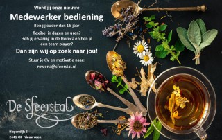 Wij hebben een vacature voor onze bediening. Spreekt het je aan, stuur dan je CV en motivatie naar: rowena@sfeerstal.nl