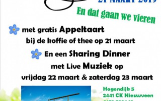 21 maart =gratis appeltaart en reserveer een Sharing dinner op 22+23 maart